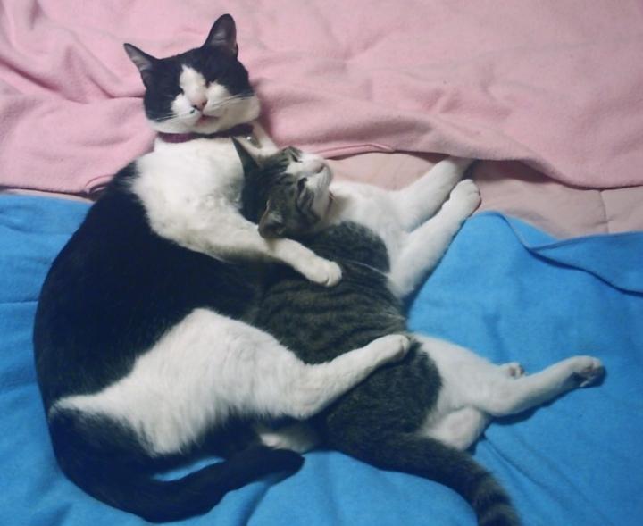 ハチ君と七七保のお昼寝も、ふたりくっつくことが多くなってきています。