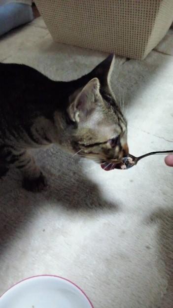 野良時代から、触らせてはくれなかったけど、スプーンで食べさせるのは好んでたなぁ~