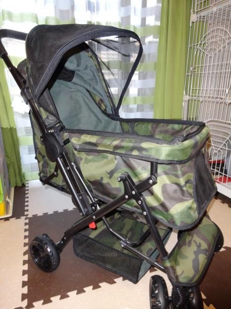 広いし、25kgまでイケるし(今まで見たやつは15kgくらいまでで、中も狭くて3匹は無理そう)、迷彩柄で男の子にちょうどいいし(水玉とかはちょっと…)。