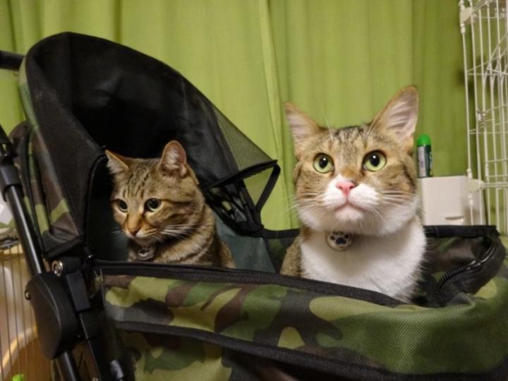 小さいキャリーにドラ、大きいキャリーにニコサクと分け、徒歩で行くんです。