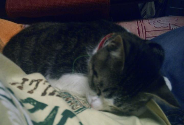 台所でおやつを食べさせて、少し震えていたので膝に乗せたら、そのまますぐ寝てしまいました。