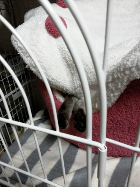 ちー坊はケージ内ふかふかケーキベッドで気持ちよさそうにねんね中です^0^