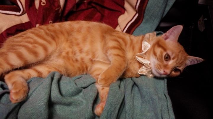 そんな斑ですが、前から気になっていたシュシュつけてみました!