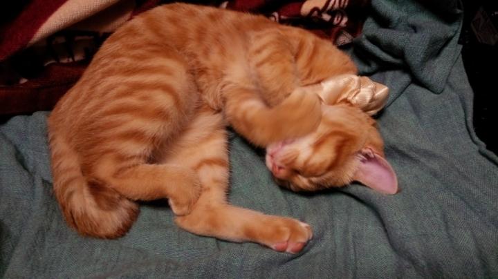 最初は気になるのか少し取ろうと格闘したりもしましたが、あきらめたのか、気にならなくなったのか・・・