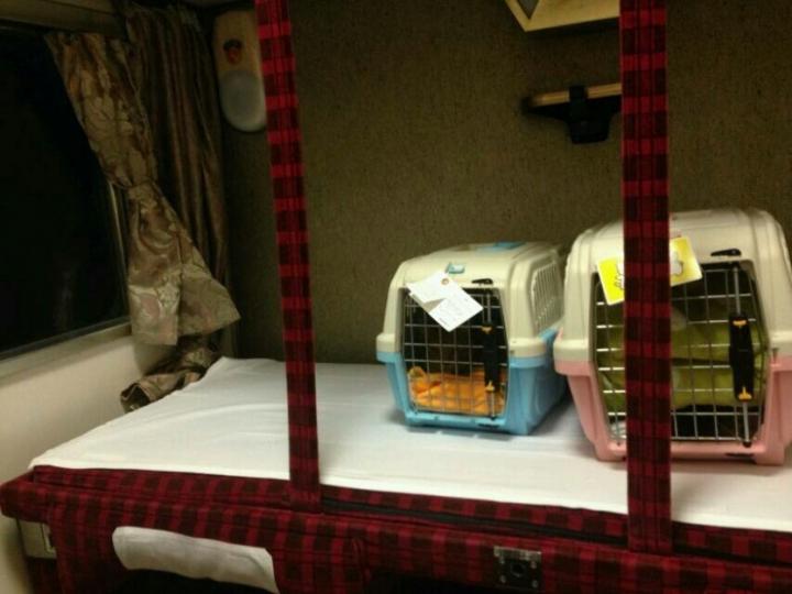 ここから到着まで15時間長いのですが意外とあっという間で、猫達もリラックスしているようでした。