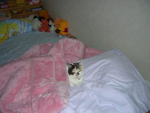 みけぼうは 娘の ベッドがお気に入りで 留守の時は寝ております
