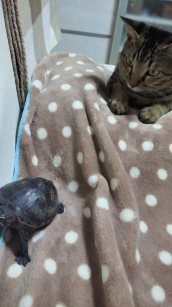出来るだけ、猫との遭遇は控えていますが、今日はおかめが、毛布から這い出てウロウロお散歩。