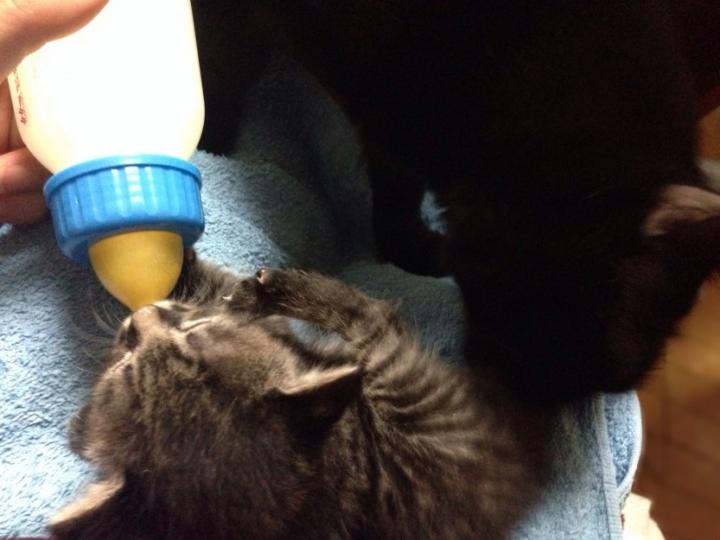 出産経験のないまま避妊手術を受けたゆず。誰が教えたわけでもないのに、赤ちゃんたちのおしりを舐めて、きれいにしてくれます。赤ちゃんたちも、人の手でやるよりスムーズに排泄できるようです。