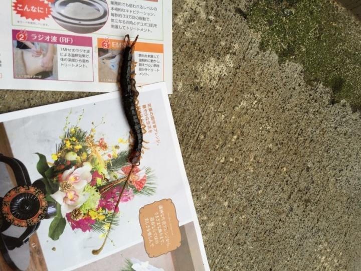 大きさがわかりにくいですが、結構大きなムカデでした。