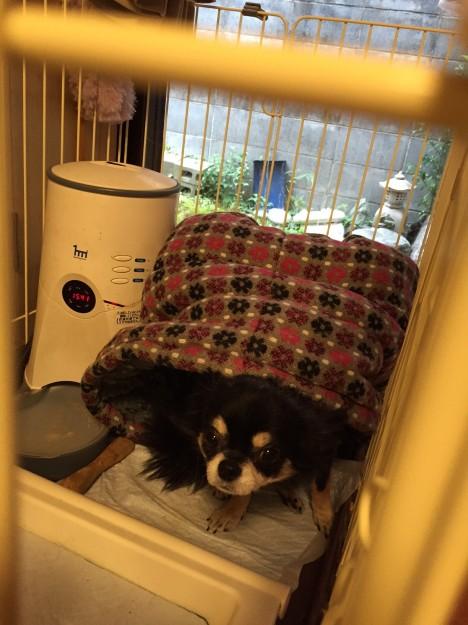 ケージで一人寂しく寝ているジュンも寒そうで可哀相なので、にゃんずに不評だった寝床を入れてみたら
