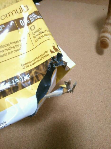ドライフード命なナナは、凄い早さで破り一番に食べました。。
