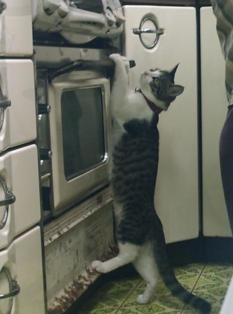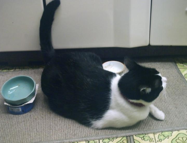 ハチ君と七七保がやって来て、お母ちゃんの足元をウロウロします。