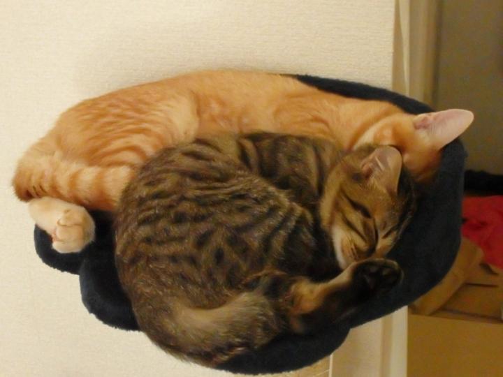 買い物から帰ってくるとベッドで寝てたはずのライくん、キャットタワーに移動して一緒に寝てました(笑)