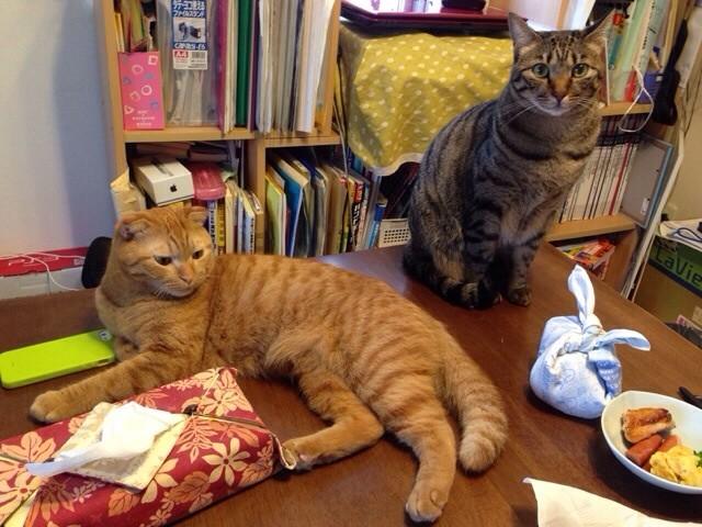 朝のゴチャゴチャしたテーブルでくつろぐ2人、、、(^^;;