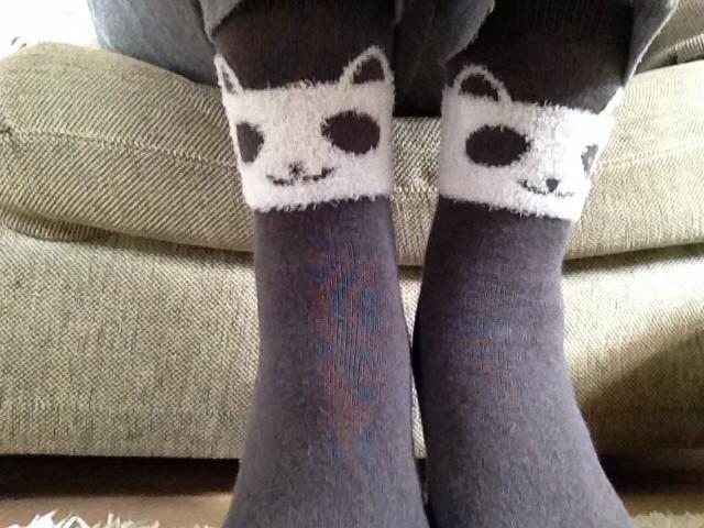 100均で猫の顔の靴下買って履いたら
