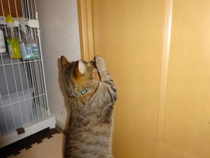 鳴きながらドアをカキカキしてます→これは『ドアを開けて!』のポーズなんです。