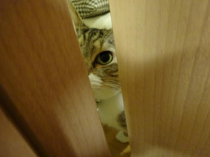 「ドラくん、何があったのかな?そーっと覗いてみよう」と言いながら、少ーしドアを開けてみる。