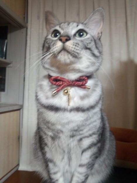初めてのすず付き首輪・・わりとスンナリはめてくれてます
