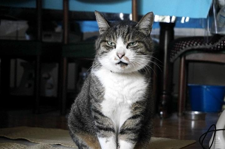 違うもん、さっきは撫でられる前にちょこっと食べただけ。