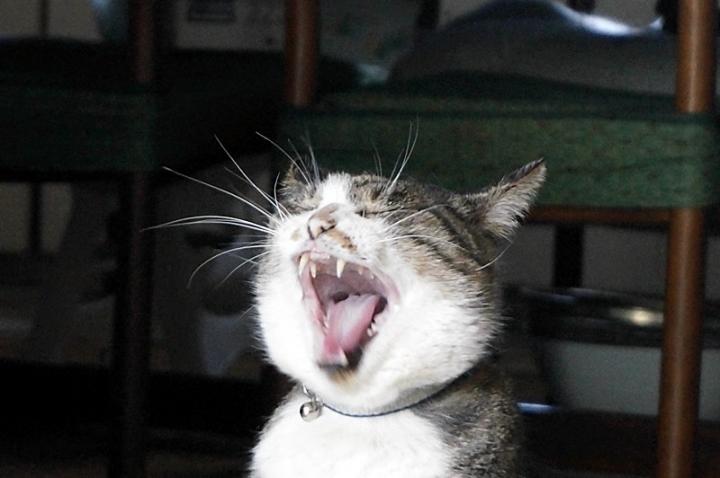 北風が強いと、物置で寝るのも嫌らしく窓の下で鳴くんですよ。