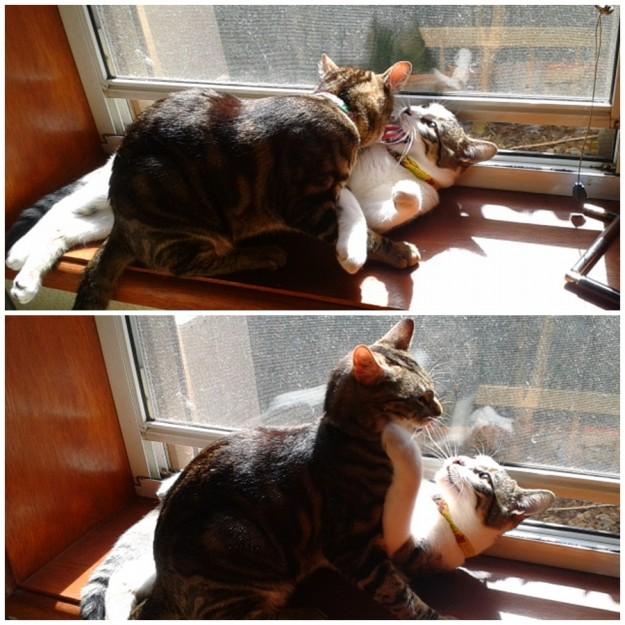 日向ぼっこをしているRupiに 襲い掛かるEuron