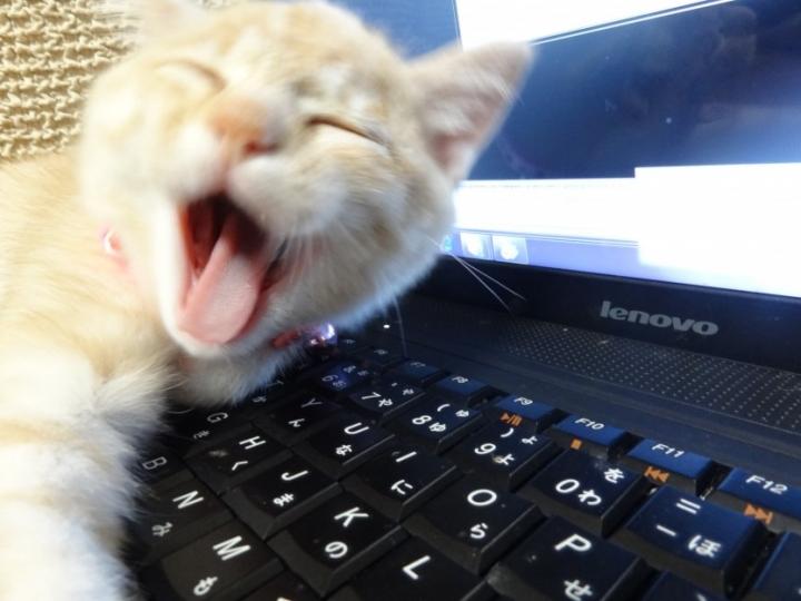 キーボードの上にやたら乗ってきてキーボードブロックしてきます(笑)