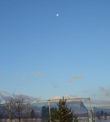 それからもう少し上空に目を向けると、西の空に白いお月様が浮かんでいました。