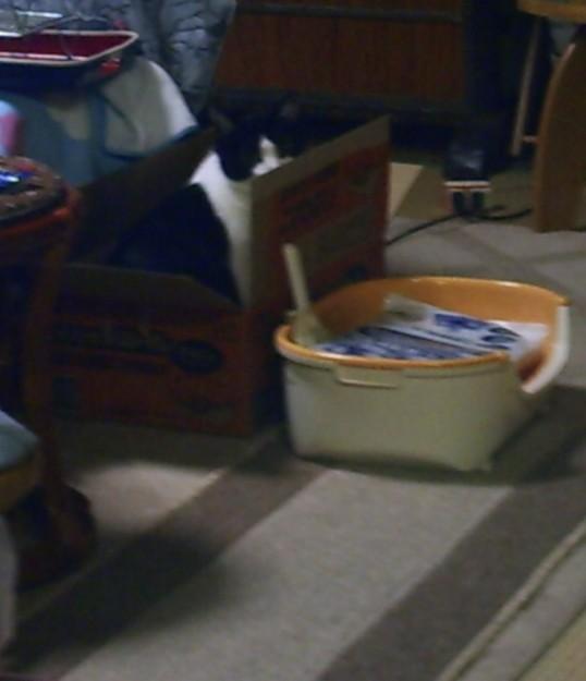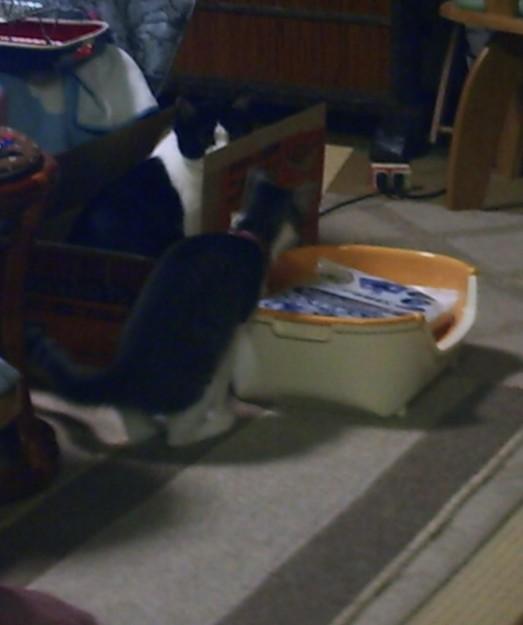 出しかけで置いておいたら、ハチ君がダンボールに入っている。