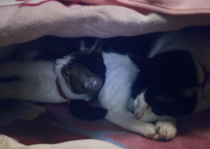ふたり仲良く、お母ちゃんのお布団にもぐってお寝んねすることに。