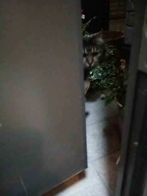 ガジローが玄関ドアの前で大合唱(-.-:)