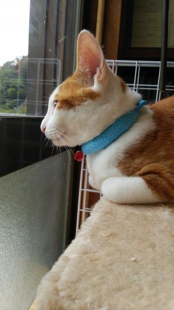 あっ(* ̄ー ̄)首輪横に、づれてる