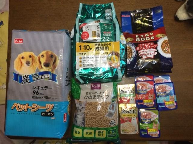トイレのシート、トイレ砂、フード2種類、パウチを買ってきました。