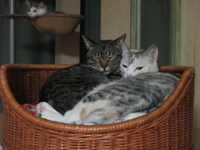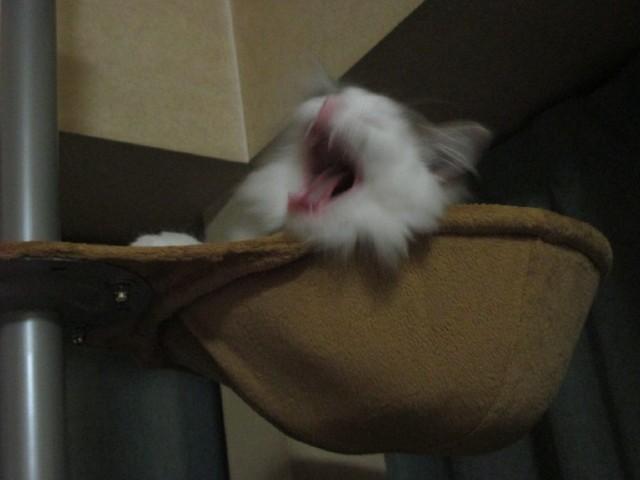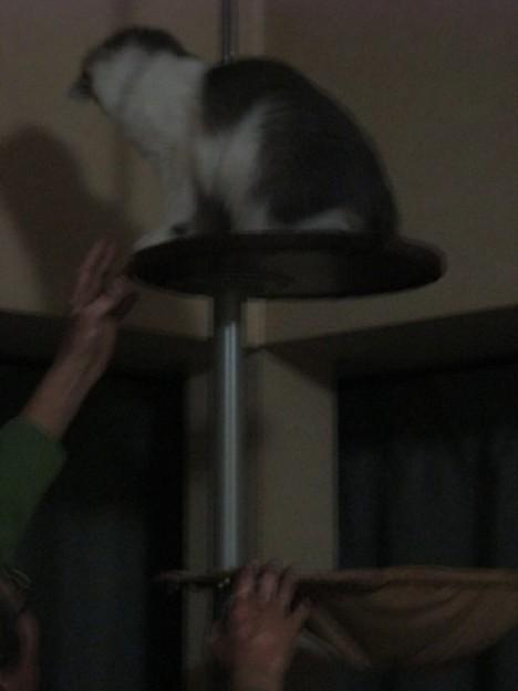 このはは手を伸ばすパパが怖くて小さなステップの上で右往左往してました。