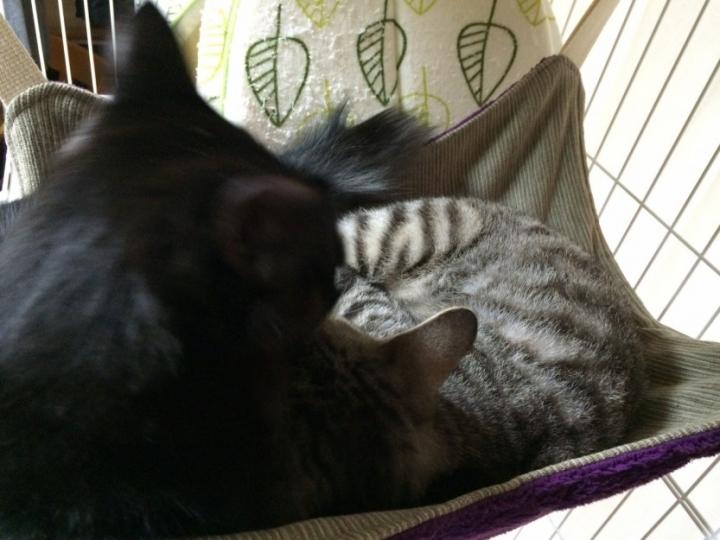 こんなにはみ出てまで一緒にいます…。