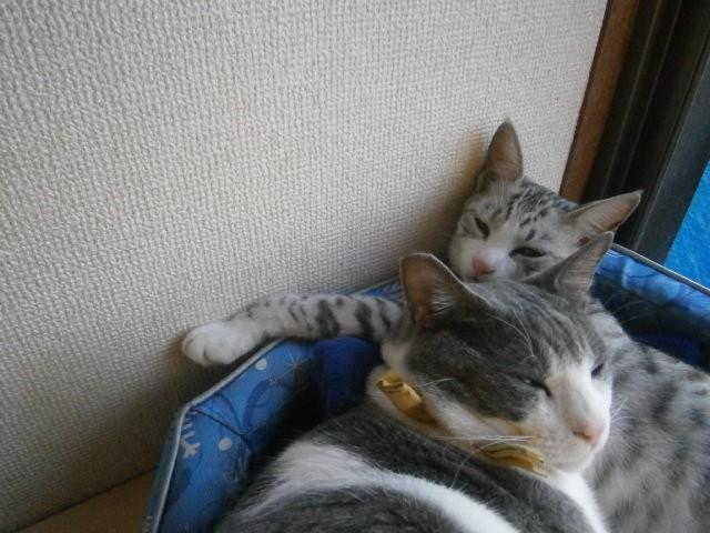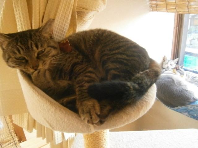 リンとチエにしてはどうせ出してもらえないから興味ないとベランダで日光浴