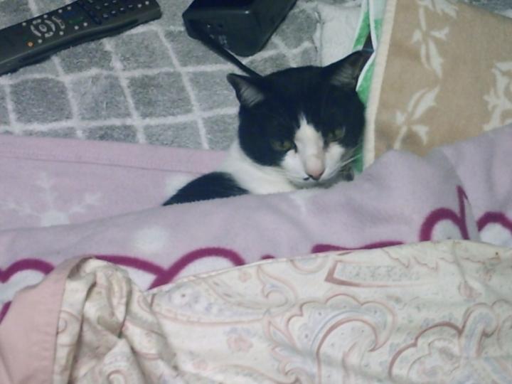 添い寝大好きなハチ君も、一緒に、お布団に入る。