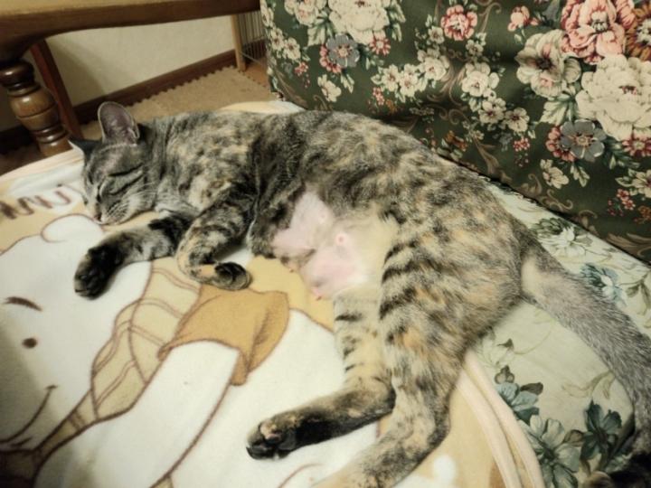 乳は相変わらずはってて、可哀想だから、猫先生に電話で聴くも熱持たなきゃ大丈夫だとの事で、様子見