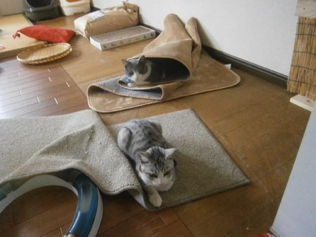 敷きなおしたマットをグチャクチャ