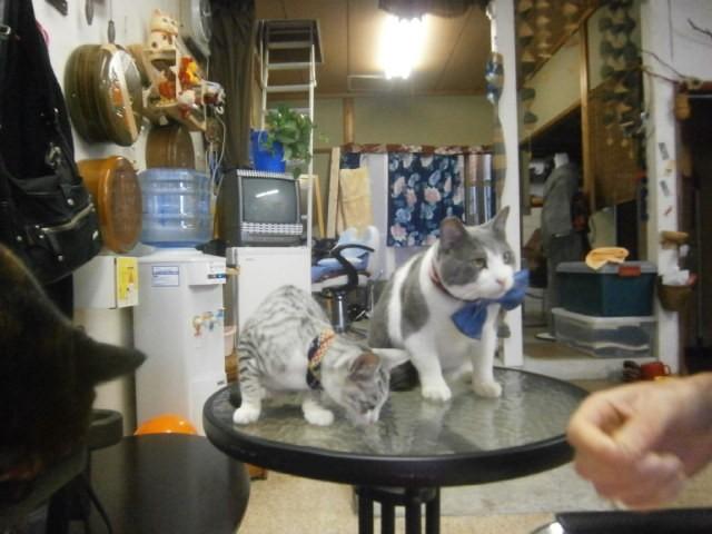お客様もチエをよけながら(横取り、大食いするので小さく小分け)