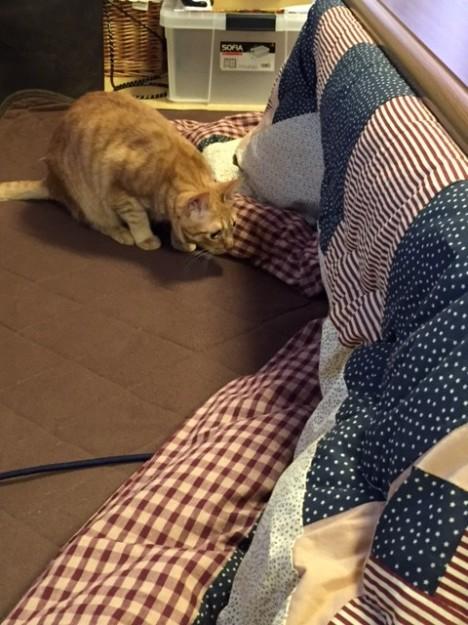 ななとそらは久々に登場したストーブに「にゃんだ?」とクンクン。