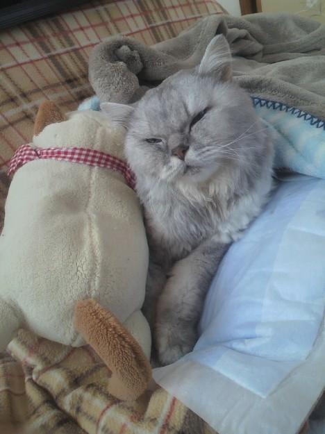 サムが寝ているこの場所に、ほんまるも辛い身体を横たえていました。