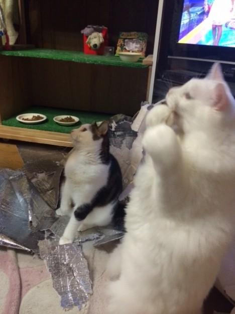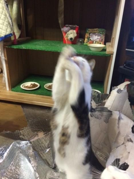 娘に紐で遊んでもらって、ご機嫌の2にゃんでした。