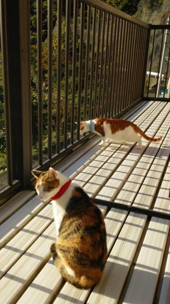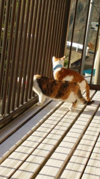 子猫見たいで可愛い、で2匹ベランダ