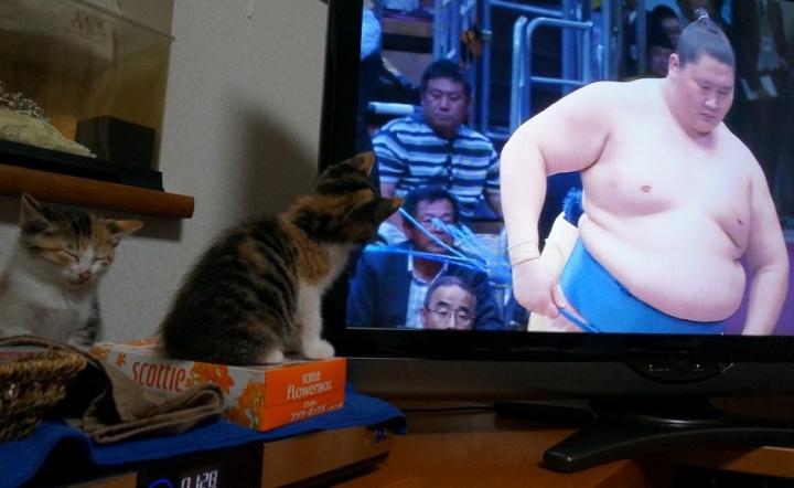 でもね、さすが我が子!パパの大好きな相撲に興味を示した!じーっと、見つめて、たまに猫パンチしとります。