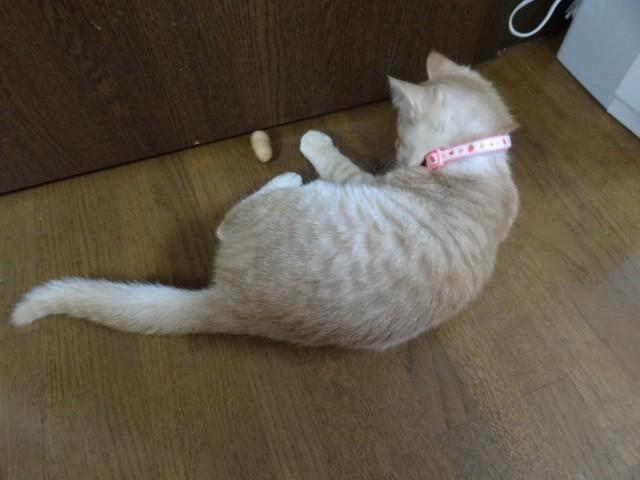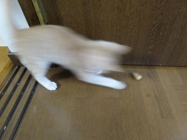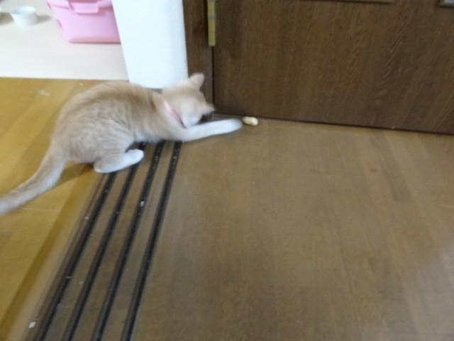 カラカラ音の出る落花生はネコちゃんにとってはたまりませんね。