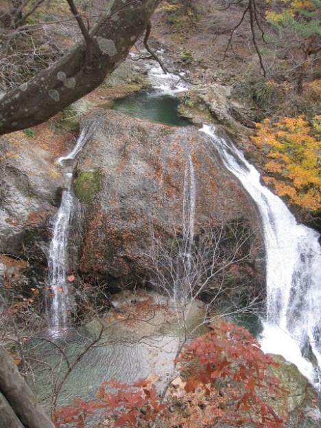 夏場は涼を求めてにぎわった滝ですが、今は音だけが轟々と響き、寒々としています。