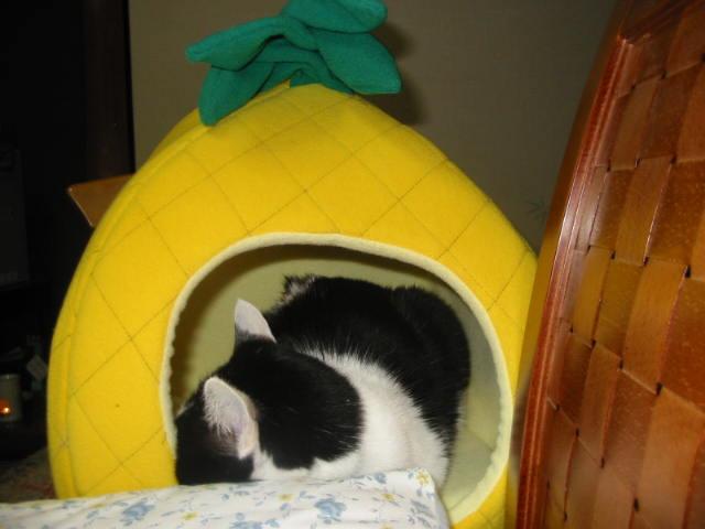 おまけ:先日ホームセンターで衝動買いしたハウスです。最近寒くなったのでやっと入ってくれました。でも朝になると布団に入ってきて、となりに寝てます。(しかも、顔を布団から出して、枕使ってます。しかも、手足でぐいぐい私を押して体半分布団から出されて、それが原因で風邪をひきました。)