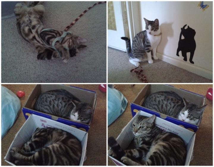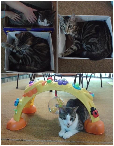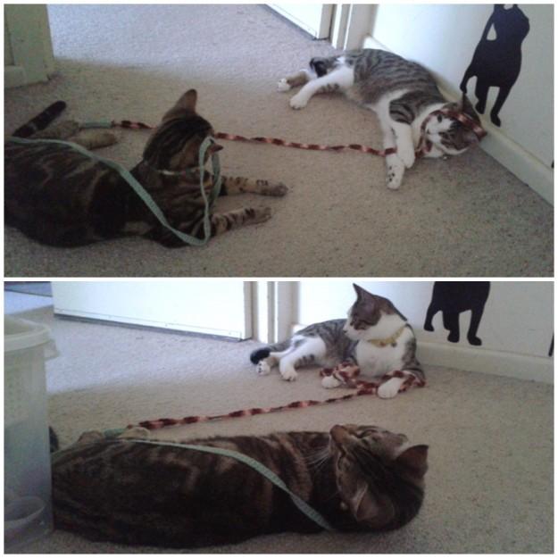紐で激しくジャレつくEuron と ぼーっと見ているRupi。