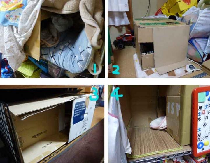 写真は猫たちの段ボール小屋。