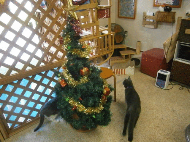 猫さん達、ツリーは食べてはいけませんよ